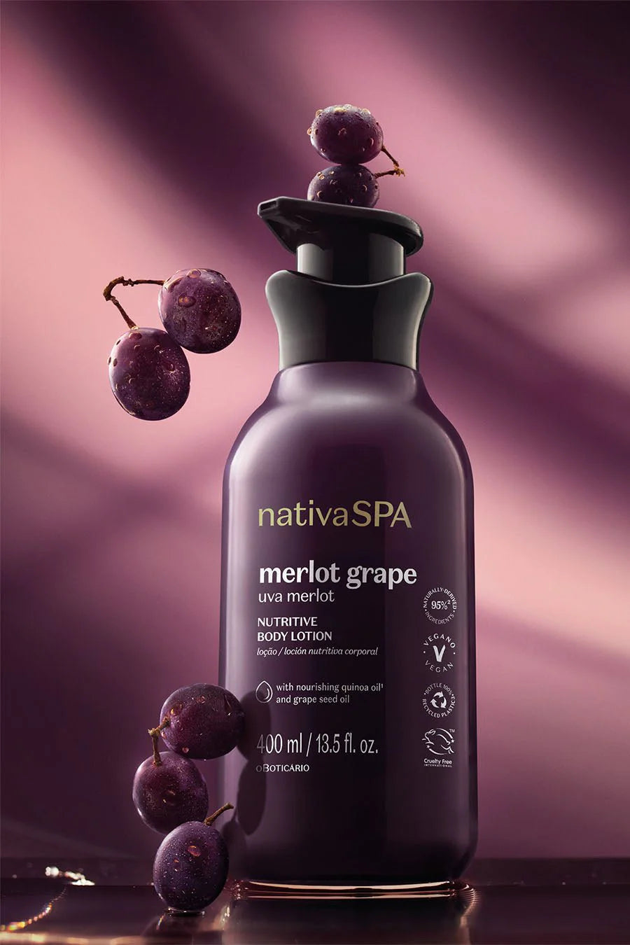 Indulge your skin in a luxurious sensorial experience with the Nativa SPA Merlot Grape Body Lotion. Enriched with Quinoa Oil and Grape Seed Oil, this lightweight yet deeply hydrating formula delivers powerful nourishment while leaving your skin soft and radiant.